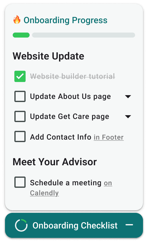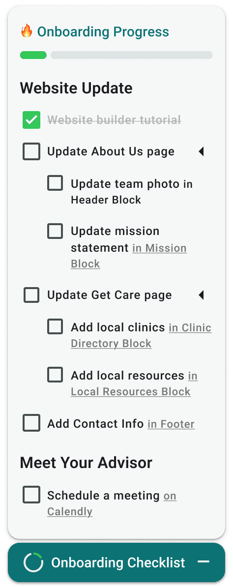 Our onboarding efforts focused on getting members to launch their website using HBFN's website builder and connecting with an advocacy advisor for a kickoff session.