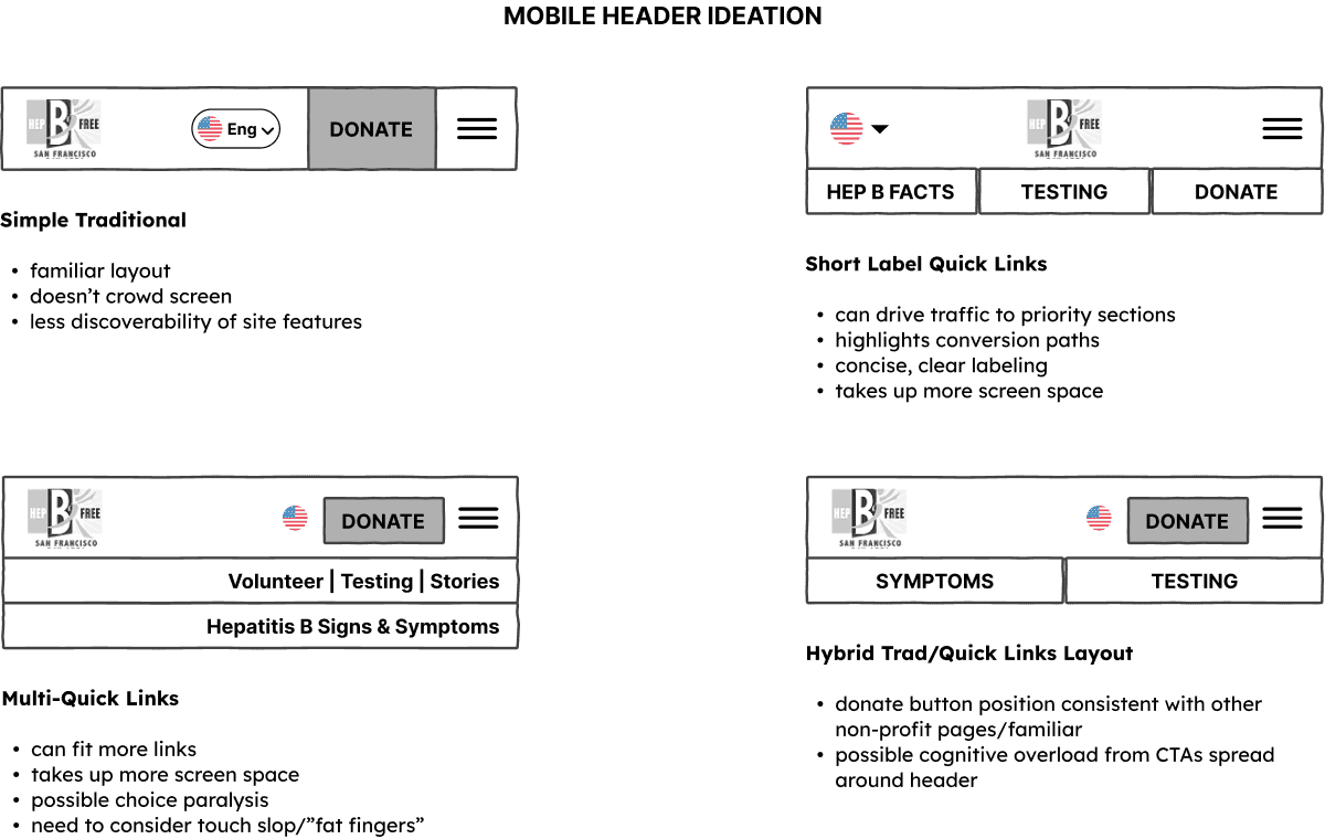 SF Hep B Free is a non-profit organization that aims to bring hepatitis B education, awareness, and care to San Francisco Bay Area communities. They wanted this website to be able to: