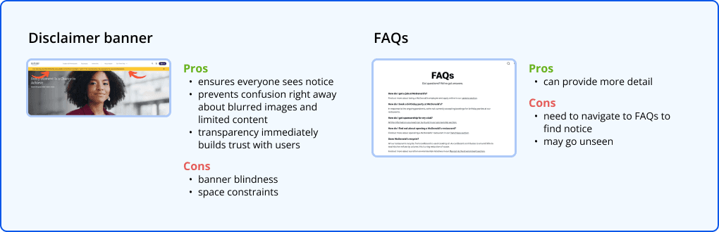 Protecting WHC As we added images to our prototype, I noticed that the About Us page still felt off. Instead of using WHC’s photos with blurred faces, we went with stock photos - we thought the blurring might make users feel more distant and untrustworthy. But I had an idea: if we could explain why we blurred the faces and why there was limited information about the people behind WHC, we might be able to use those real photos. It could help people feel more connected and trust the organization by providing more transparency.